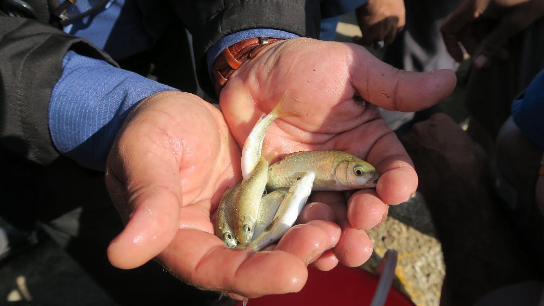 رهاسازی 450 هزار قطعه بچه ماهی بومی در دریاچه سد تنظیمی حمیدیه