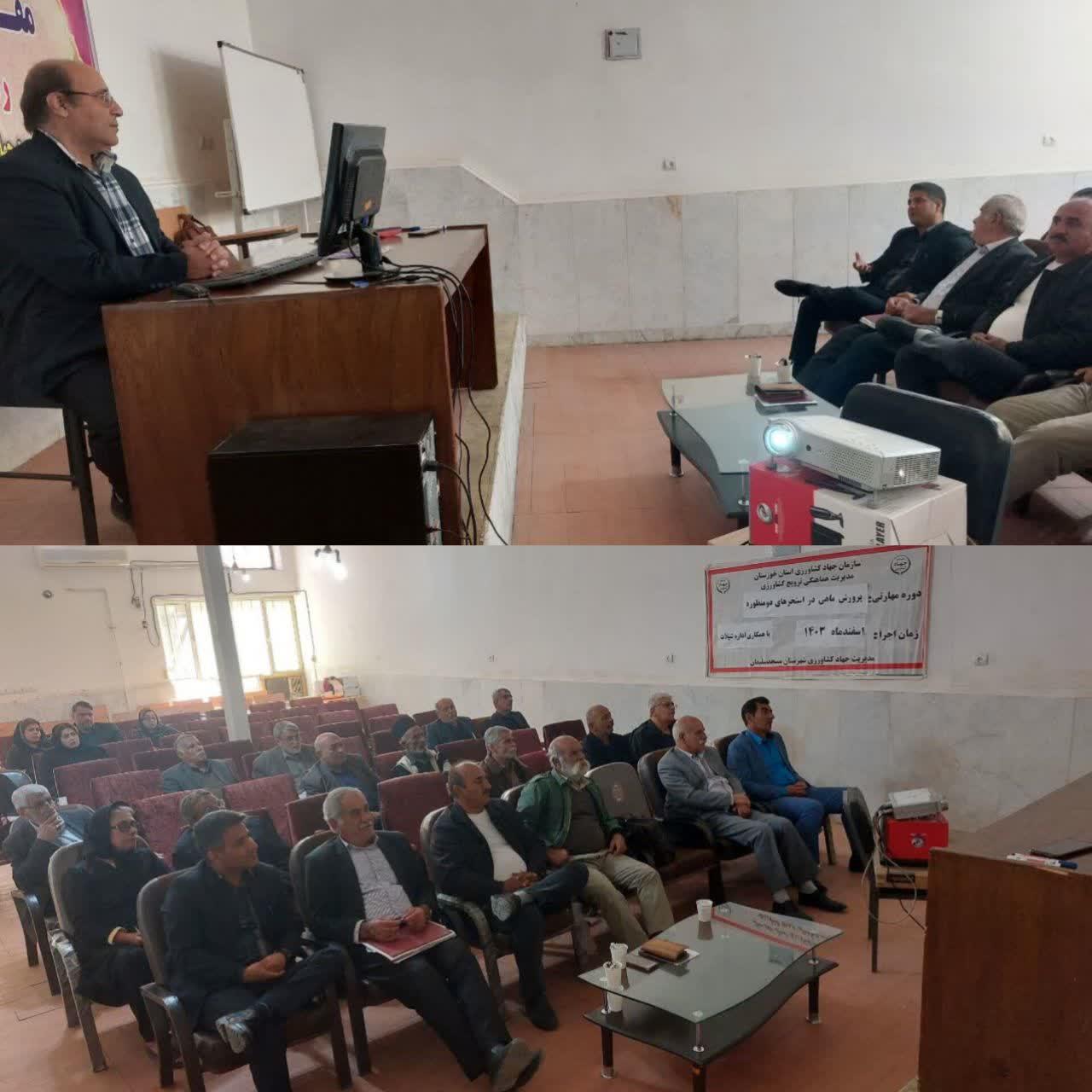 دوره آموزشی پرورش ماهی در استخرهای دومنظوره کشاورزی در شهرستان مسجدسلیمان توسط اداره کل شیلات استان و با حضور کشاورزان و متقاضیان اجرای طرح در سالن اداره جهاد کشاورزی این شهرستان برگزار شد.