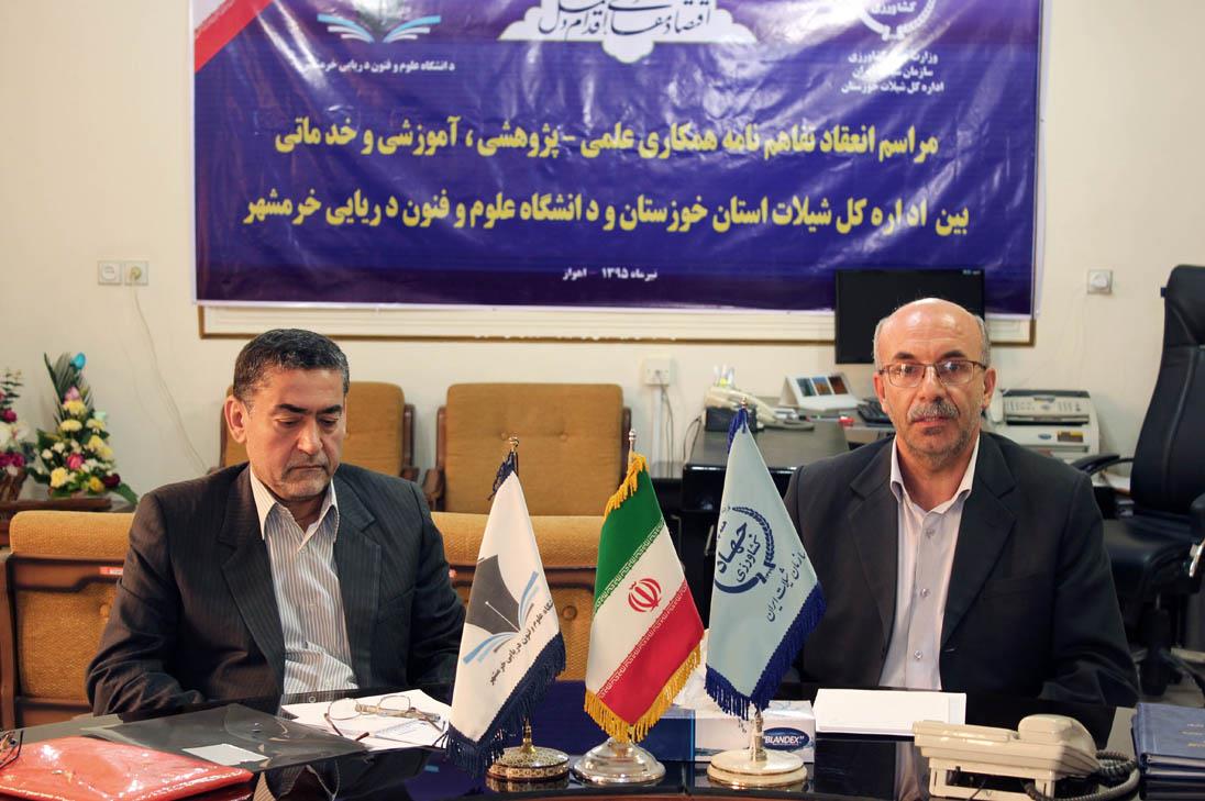 مدیرکل شیلات خوزستان در این آیین گفت: این تفاهم نامه در جهت همکاری علمی، و ارائه اطلاعات در خصوص صیدگاه ها، مجمتع های آبزی پروری، مزارع و ... با دانشگاه علوم و فنون دریایی خرمشهر است. دکتر نبی اله خون میرزایی افزود: آمار و اطلاعات لازم برای انجام مطالعات و پروژه های تحقیقاتی نیز در اختیار این دانشگاه قرار می گیرد و اطلاعات ناقص آنها در زمینه برخی موارد شیلات را برای انجام مطالعات تکمیل می کنیم. دکتر لطف الله خواجه پور رییس دانشگاه علوم و فنون دریایی خرمشهر نیز در این آیین اظهار کرد: این دانشگاه ظرفیت های خوبی در رابطه با مطالعات تحقیقاتی و تبادل اطلاعات دارد و در فرایند اجرایی آبزی پروری و صیادی می تواند با شیلات همکاری خوبی داشته باشد. وی افزود: استفاده از کارگاه ها و آزمایشگاه های دو طرف و برگزاری همایش ها و کارگاه ها در سطح ملی از مفاد این تفاهم نامه است.