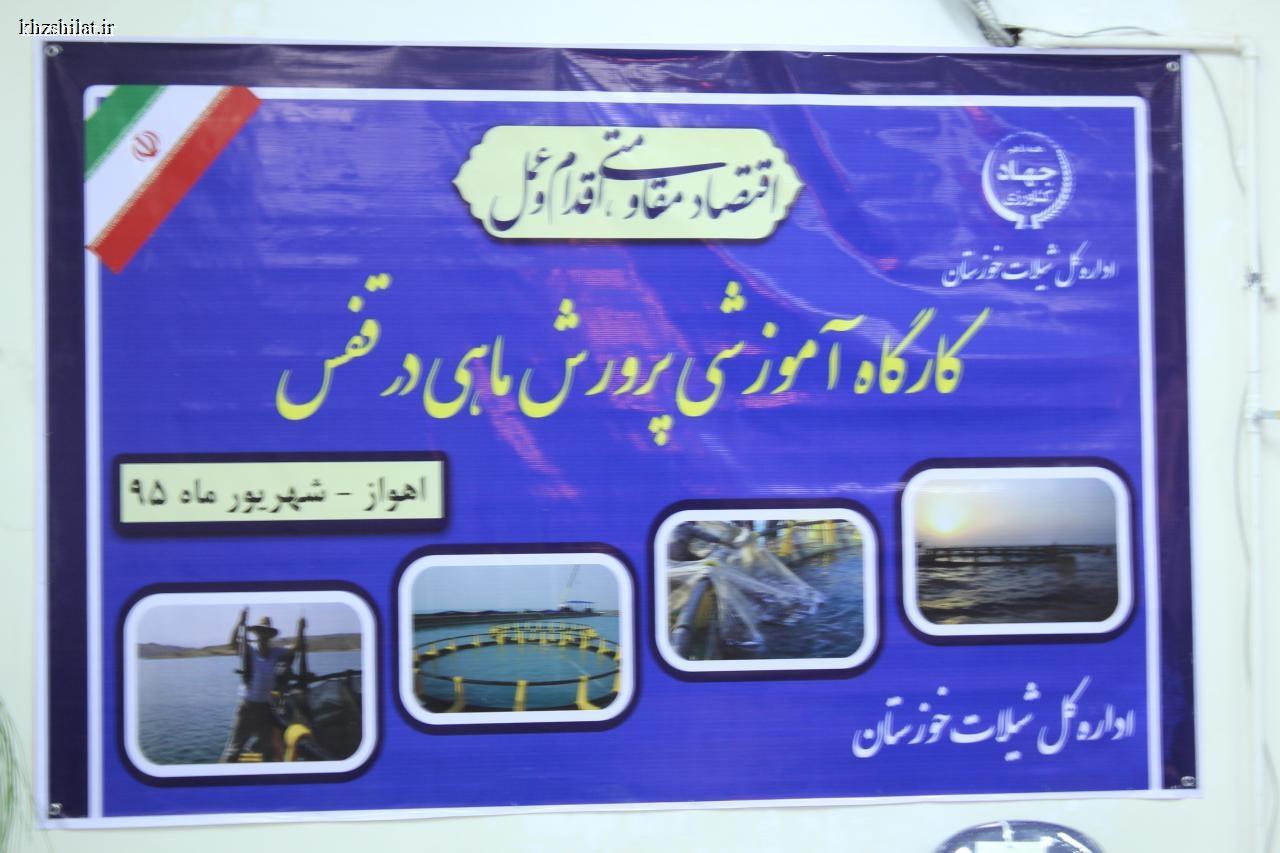 به گزارش روابط عمومی شیلات خوزستان ، در راستای حمایت از طرح های توسعه آبزی پروری و لزوم توجه به پرورش ماهی در قفس بعنوان یکی از ارکان سیاست های اقتصاد مقاومتی و استفاده بهینه از ظرفیتهای موجود در استان و به منظور انتقال دانش فنی و آگاهی از آخرین دستاوردها و استانداردهای جهانی ، یکدوره کارگاه آموزشی تخصصی با عنوان " پرورش ماهیان دریایی در قفس " در تاریخ 95/6/15 در محل سالن اجتماعات اداره کل دامپزشکی خوزستان برگزارشد. درابتدای این کارگاه آموزشی دکتر خون میرزایی مدیر کل شیلات خوزستان ، کلیاتی راجع به موقعیت استان در زمینه آبزی پروری و اهمیت پرورش ماهی در قفس بعنوان یکی از ارکان سیاست های اقتصاد مقاومتی بیان کرد .