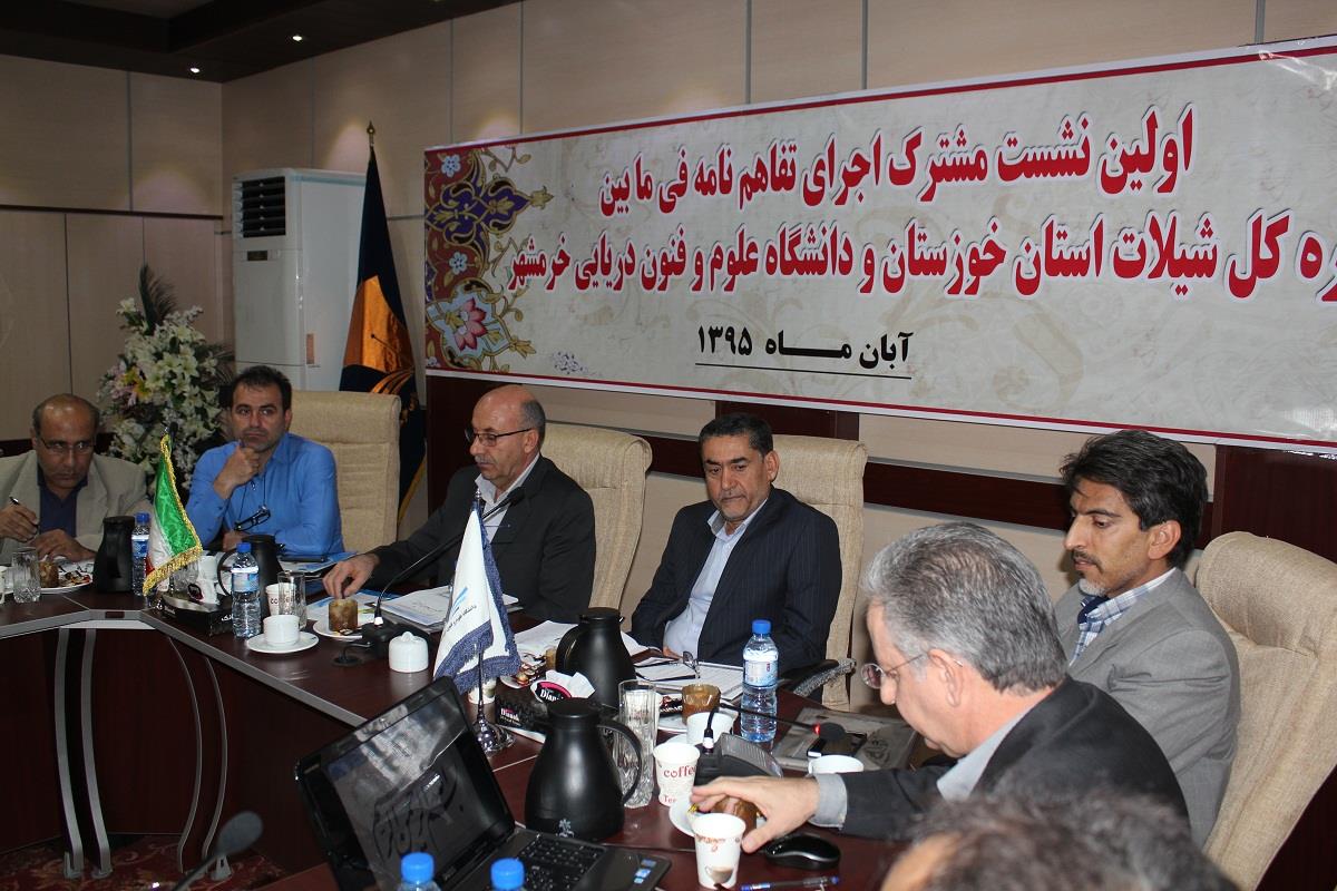 در ابتدای این نشست دکتر خواجه پور رئیس دانشگاه علوم و فنون دریایی خرمشهر ضمن تسلیت اربعین حسینی ،با برشمردن پتانسیلها و امکانانات دانشگاه جهت اجرایی نمودن تفاهم نامه ، مطالبی را عنوان کرد .