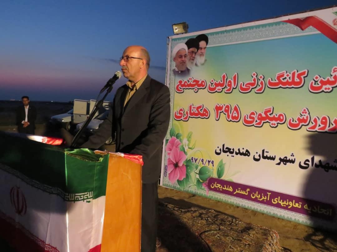 وی در ادامه از زحمات دکتر شریعتی استاندار، دکتر حاجتی رئیس سازمان برنامه و بودجه، دکتر بحرینی معاون اقتصادی استاندار، مهندس چنگلوایی رئیس جهادکشاورزی، مهندس مودت فرماندار هندیجان، دکتر گلمرادی نماینده مردم شریف هندیجان در مجلس شورای اسلامی، مهندس شاچری مدیرکل امور اراضی جهادکشاورزی استان، مدیرکل منابع طبیعی استان، مدیرکل سرمایهگذاری و امور اقتصادی استانداری و مدیرعامل اتحادیه آبزیان گستر هندیجان تشکر و قدر دانی کرد.