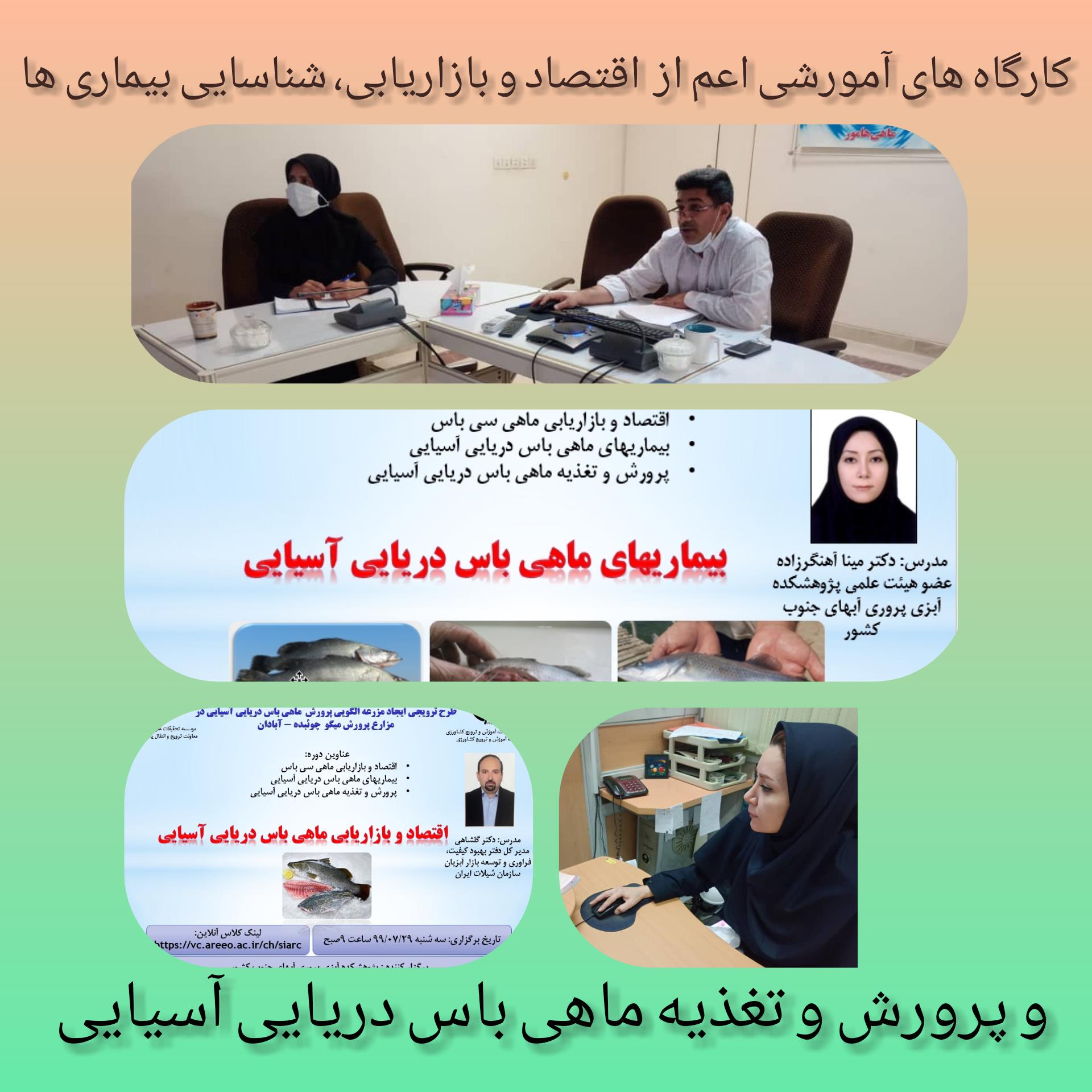 به گزارش روابط عمومی شیلات خوزستان، فتح اله ابوعلی، کارگاه های آمورشی اعم از اقتصاد و بازاریابی، شناسایی بیماری ها و پرورش و تغذیه ماهی باس دریایی آسیایی را از جمله برنامه هایی برشمرد که از طریق وبینار در پژوهشکده آبزی پروری جنوب کشور به اجرا در آمد.