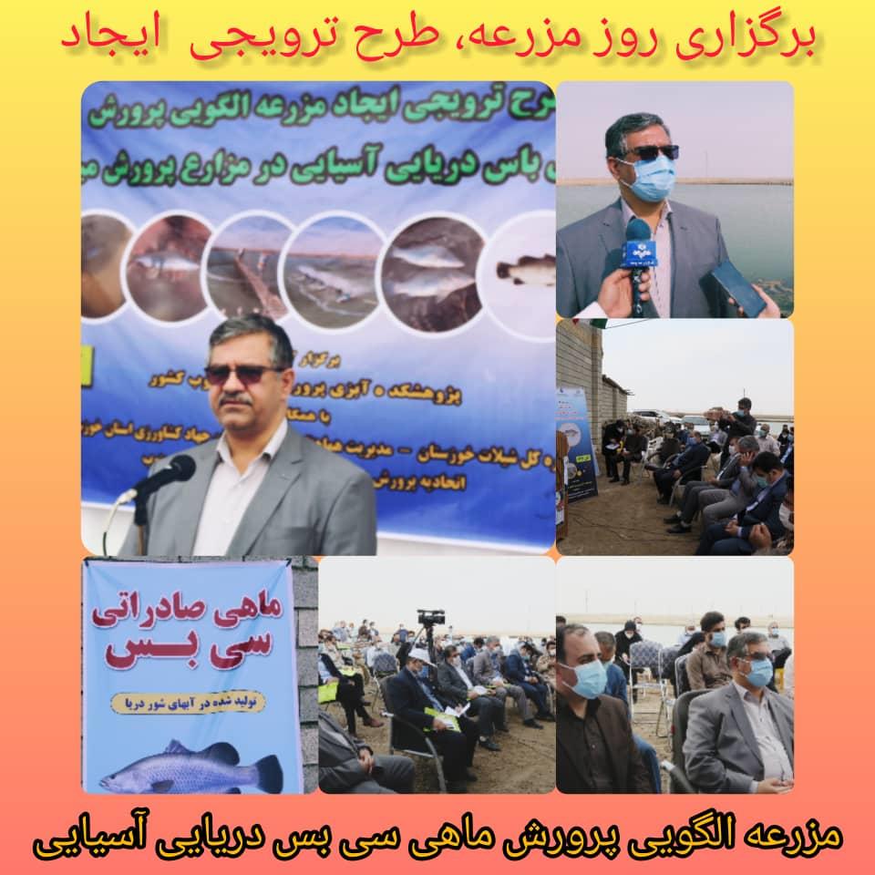 به گزارش روابط عمومی شیلات خوزستان ، فتح اله ابوعلی در مراسم روز مزرعه، طرح ترویجی ایجاد مزرعه الگویی پرورش ماهی سی باس دریایی آسیایی که امروز یکشنبه با حضور آقایان مختار ومولوی نمایندگان مردم آبادان در مجلس شورای اسلامی ، امیری زاده رئیس سازمان جهاد کشاورزی خوزستان ، هوشمند رییس پژوهشکده آبزی پروری جنوب کشور ، میرزایی معاون آبزی پروری خوزستان ، علی کرد مدیر هماهنگی ترویج کشاورزی استان در مزارع پرورش میگو منطقه چوِئبده آبادان برگزار شد