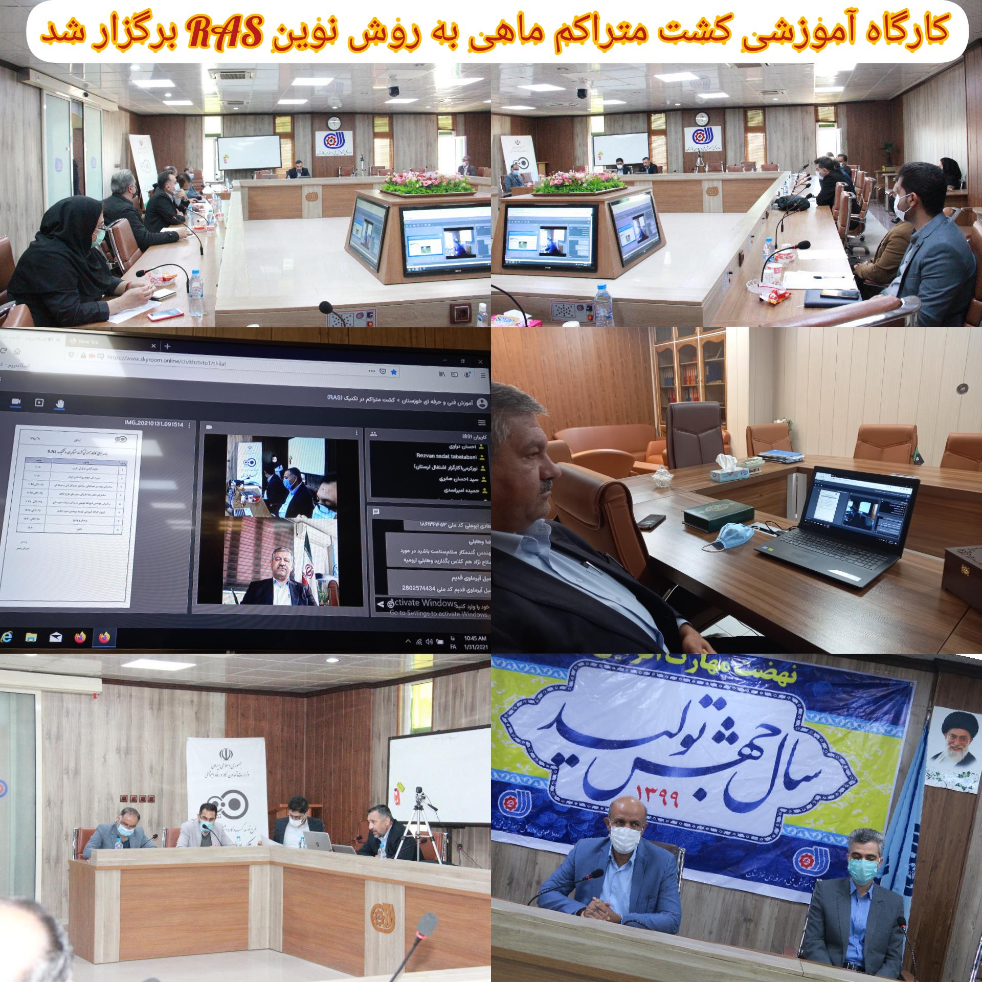کارگاه آموزشی کشت متراکم ماهی به روش RAS به صورت آنلاین با حضور مدیران کل شیلات و فنی و حرفه ای خوزستان، مدیر ملی طرح تکاپو و جمعی از کارشناسان در محل اداره کل فنی و حرفه ای خوزستان برگزار شد.