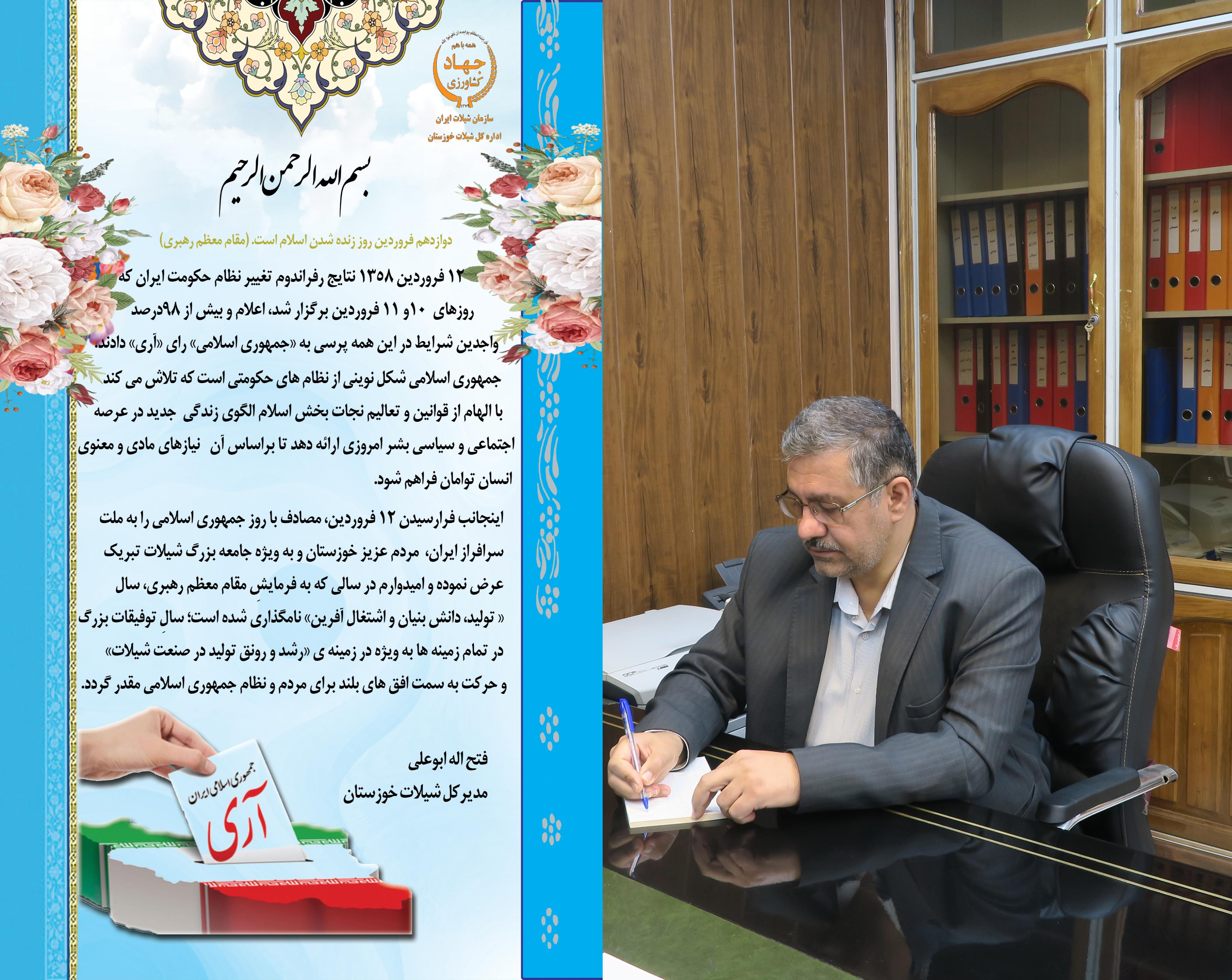 اینجانب فرارسیدن ۱۲ فروردین، مصادف با روز جمهوری اسلامی