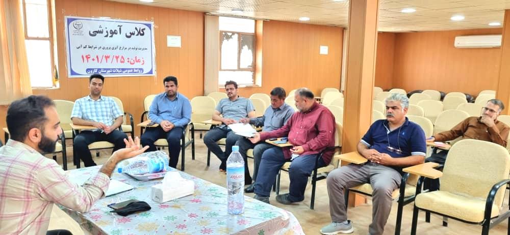کارگاه با حضور رئیس اداره شیلات شهرستان کارون، رئیس اتحادیه فاز یک مجتمع پرورش ماهیان